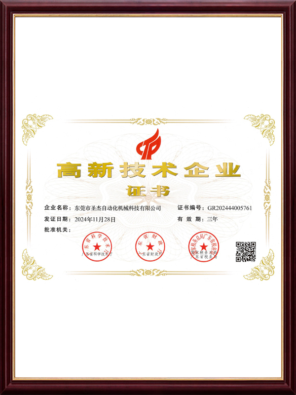 東莞市圣杰自動(dòng)化機(jī)械科技有限公司成立于2010年,座落于電子名鎮(zhèn)——廣東省東 莞市石碣鎮(zhèn),注冊(cè)資金800萬(wàn),擁有多項(xiàng)發(fā)明專利,實(shí)用新型專利,并通過(guò)了 ISO9001質(zhì)量管理體系認(rèn)證,經(jīng)過(guò)多年的發(fā)展與技術(shù)沉淀,公司已發(fā)展成為一家專 業(yè)從事非標(biāo)自動(dòng)化設(shè)備研發(fā)、生產(chǎn)、銷售為一體的高新技術(shù)型企業(yè),并在行業(yè)具有 一定的知名度。 圣杰擁有一支高素質(zhì)、高效率且多年從事非標(biāo)自動(dòng)化設(shè)備研發(fā)與生產(chǎn)的工程技術(shù)團(tuán) 隊(duì),為客戶提供工程設(shè)計(jì)、制造安裝、現(xiàn)場(chǎng)調(diào)試、技術(shù)培訓(xùn)等全方位的自動(dòng)化設(shè)備 解決方案。主要涉及行業(yè)有:電子連接器行業(yè),建筑五金行業(yè),儀表行業(yè),汽車配 件行業(yè)等。